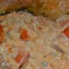 A rizst megpároltam és kettőjüket finoman összekevertem. Pompás gombás-rizottónak is nevezhetnénk. Most a húst nevezem köretnek, mert annyira finomra sikerült a gombás étek, hogy én egész délután a csodájára jártam. Éppen addig, míg el nem fogyott.