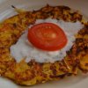 Krumpli helyett cukkini adta az alapot. Két közepes nagyságú cukkinit hámoztam és reszeltem meg. Adtam hozzá egy egész tojást, sót, kevés borsot és annyi lisztet amennyit felvett.Egy csokor petrezselyemzöldet felvágtam, több mint kétharmadát beleszórtam.