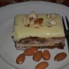 Megpirítjuk a szeletelt mandulát, ezt is a csokihoz adjuk, végül a lisztes-mandulás-sütőporos száraz hozzávalók keverékét.