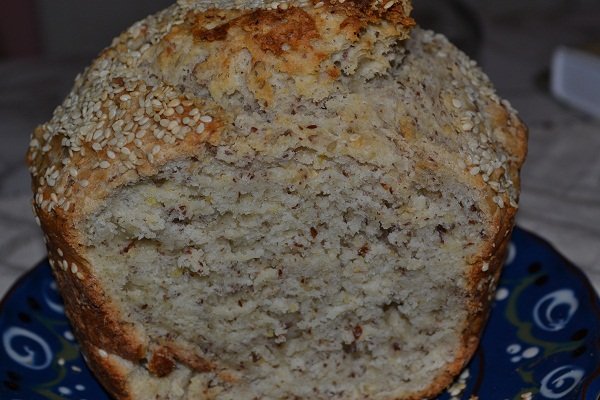 Durumlisztes, lenmagos kenyér házilag sütve.