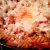 Kör alakú tortaformába simítjuk a masszát és alaposan megszórjuk a tetejét a maradék reszelt sajttal.