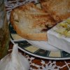 A sajtokat lapjával felszeleteljük. Megkenjük egyenként a paprikakrémmel. Én házi készítésűt használtam, de a felsoroltak is tökéletesek.