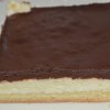 Ehhez 20 dkg cukrot egyenletes tűzön felmelegítettem és belekevertem 3 dkg vajat (vajkaramell). Gyorsan rácsorgattam a piskótára és próbáltam elkenni, majd felvágni. Először meleg késsel dolgoztam, de az szálat húzott, ezért sürgősen lehűtöttem a kést és bevizeztem. Na, így már lett belőle valami. Csupán 8 részre osztottam, így is alig maradt időm, nehogy megkeményedjen a karamell. Hát, ezt még gyakorolni kell!
