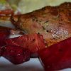 A céklát kockákra vágom, miután meghámoztam. Szintén olívaolajon fedő alatt megpirítom, és megfűszerezem a sóval, borssal, rozmaringgal. Időnként megkevergetem, figyelek rá, oda ne kapjon az alja.