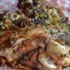 Tálaláskor egy adag rizottót helyezünk a tálra, majd felvágunk egy combot és mellé helyezzük.