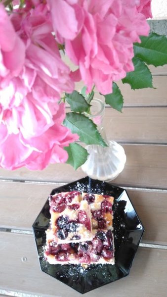 Igazából hagyni kellett volna teljesen kihűlni a tepsiben, hogy szépen lehessen szeletelni, de mi nem bírtuk kivárni.