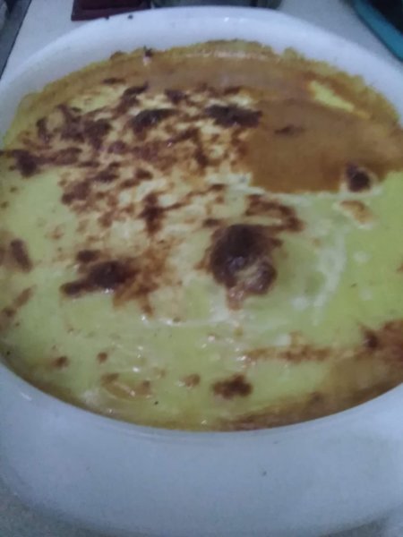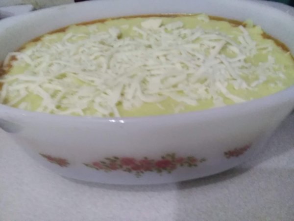 A húsos mártást egy hőálló tálba átmerjük, majd a burgonyapürével bevonjuk a tetejét.