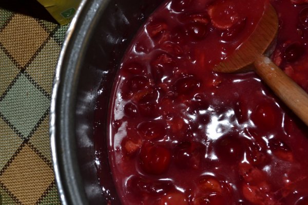 A meggyet egy edényben rövid ideig forraljuk,a hozzáadott cukorral,citromlével, fahéjjal.