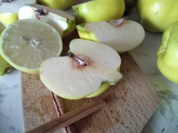Felezzük, negyedeljük. A magházát kivesszük, egyenest beletesszük egy vászonzsákba. Ha kukacos részre lelünk, kivágjuk. Hámozni nem kell, így tesszük egy fazékba, amit annyi vízzel engedünk fel, amennyi ellepi a birset. Belefacsarjuk a citromok levét, ezzel megelőzzük az elszíneződést.