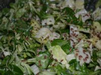 Egyik fiam nagyon odafigyel mit eszik, és tésztát egyáltalán nem hajlandó mostanában a szájába venni, mert az ugyebár hízlal! A rizst meg én unom, úgyhogy amikor megláttam egy szép fej jégsalátát, úgy döntöttem azt fogom köretnek elkészíteni. Vettem hozzá csomagnyi madársalátát, és hazabandukolva kigondoltam a receptet. A jégsalátát hosszúkásra vágtam, ráhintettem a madársalátát. Dresszinget állítottam…